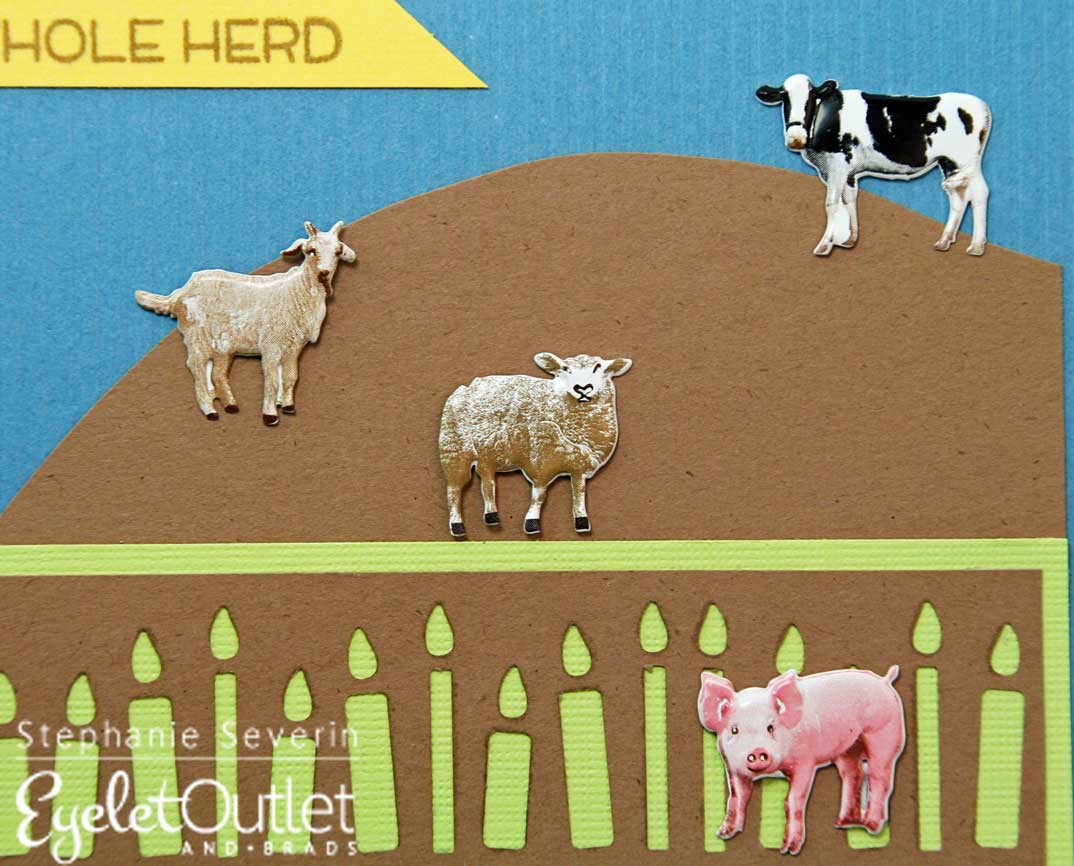 Then the sentiment follows with a picture I purchased in the Silhouette store. I color matched it to the brads.