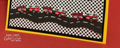 I thought three firetrucks hurrying over the road would make a great "Three Alarm" third birthday card for a little guy who loves firetrucks!
